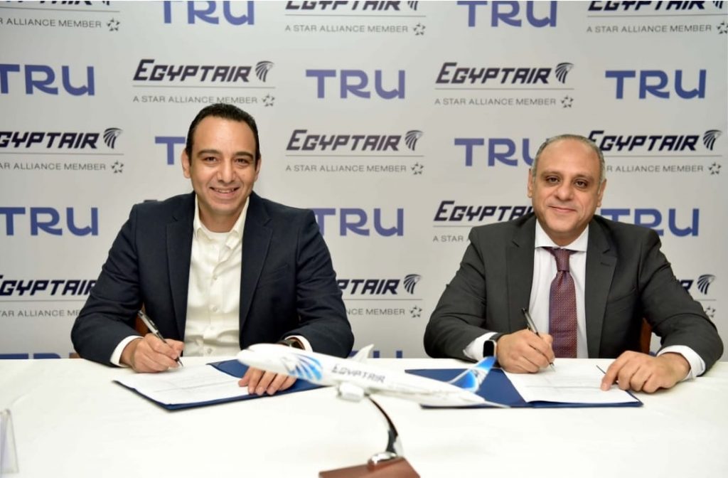 قام بتوقيع الاتفاقية كل من الأستاذ عمرو عدوي، رئيس قطاع الشؤون التجارية بشركة مصر للطيران للخطوط الجوية والأستاذ أحمد عصام سعودي، الرئيس التنفيذي لشركة “ترو”.