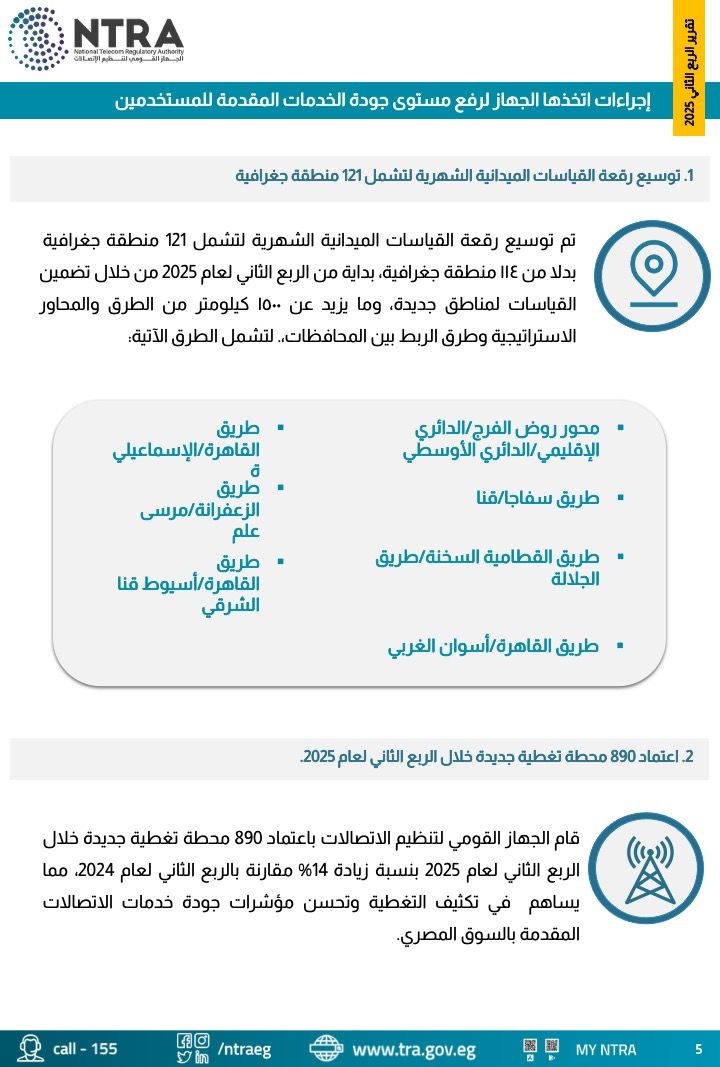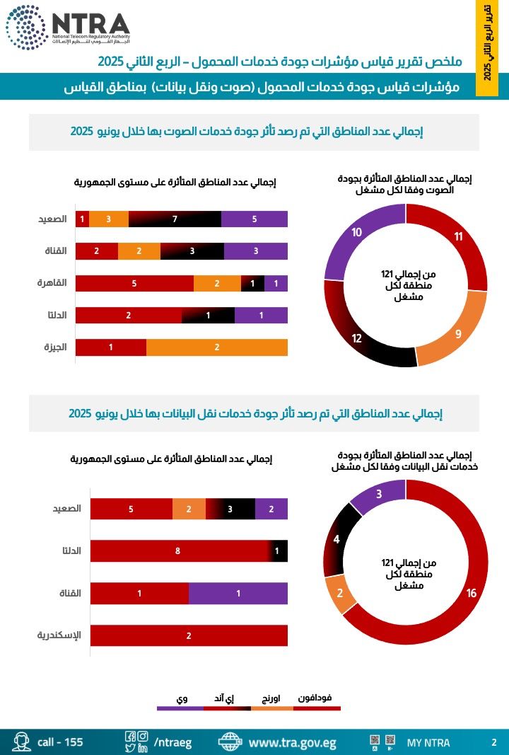 الجهاز القومي لتنظيم الاتصالات يصدر تقرير نتائج قياسات جودة خدمة شبكات المحمول للربع الثاني لعام 2025
