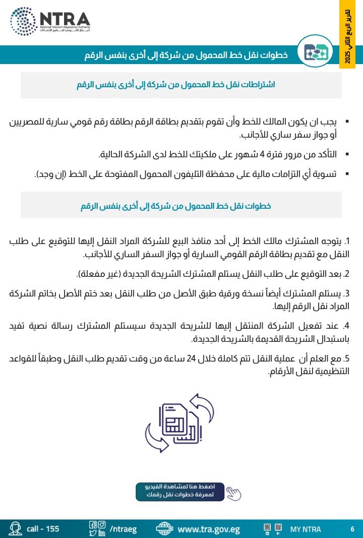 في إطار حرص الجهاز القومي لتنظيم الاتصالات على تعزيز جودة خدمات الاتصالات المقدمة للمستخدمين، أصدر المركز القومي لمراقبة جودة خدمات الاتصالات التابع للجهاز القومي لتنظيم الاتصالات تقرير نتائج قياسات جودة خدمات الاتصالات، خلال الربع الثاني من عام 2025 (من أبريل إلى يونيو 2025).