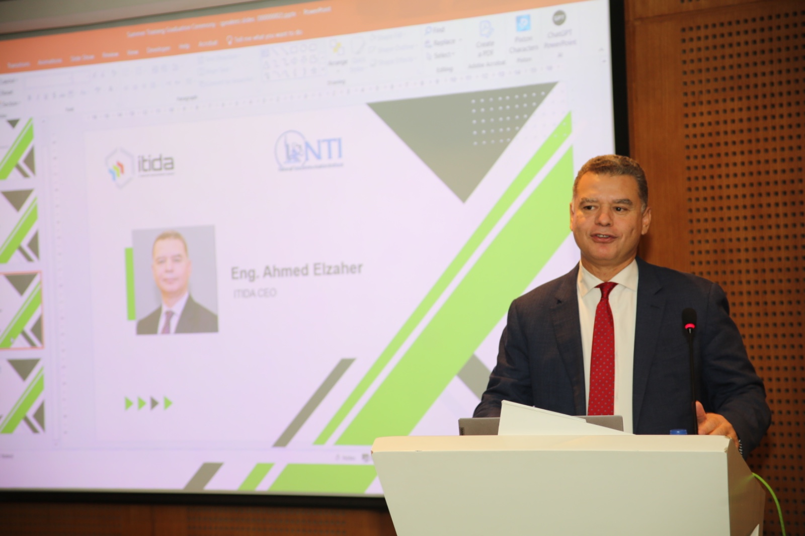 حضر فعاليات حفل التكريم المهندس/ أحمد الظاهر، الرئيس التنفيذي لهيئة تنمية صناعة تكنولوجيا المعلومات (إيتيدا) والدكتور/ أحمد خطاب، مدير المعهد القومي للاتصالات (NTI) والمهندس/ محمود صفراطه، نائب الرئيس التنفيذي للهيئة لتنمية أسواق تكنولوجيا المعلومات، وعدد من قيادات الهيئة والمعهد.