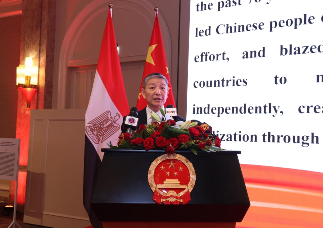 من جانبه، قال السيد/ لياو ليتشيانج سفير الصين بالقاهرة:” إن العلاقات المصرية الصينية تمر حاليا بأفضل مراحلها بالتاريخ وأصبحت نموذجا للتضامن والتعاون والمنفعة المتبادلة والكسب المشترك بين الصين والدول العربية والأفريقية والإسلامية والنامية”.