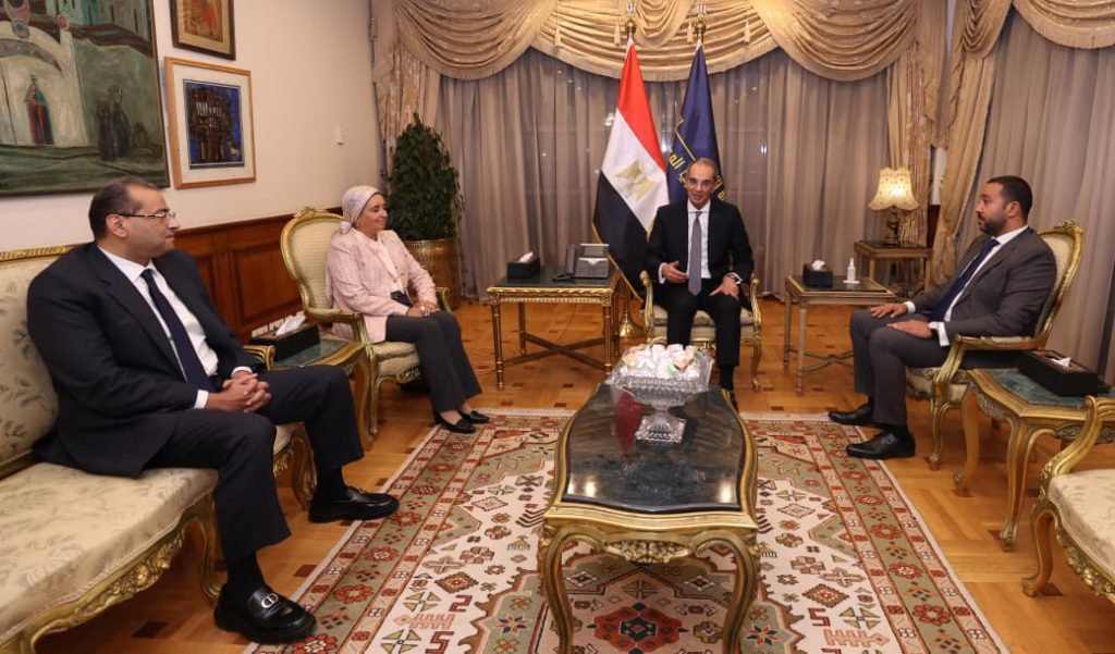 الدكتور عمرو طلعت وزير الاتصالات وتكنولوجيا المعلومات يستقبل السيدة لبنى هلال رئيس مجلس إدارة الشركة المصرية للاتصالات والمهندس تامر المهدى العضو المنتدب والرئيس التنفيذى الجديد للشركة