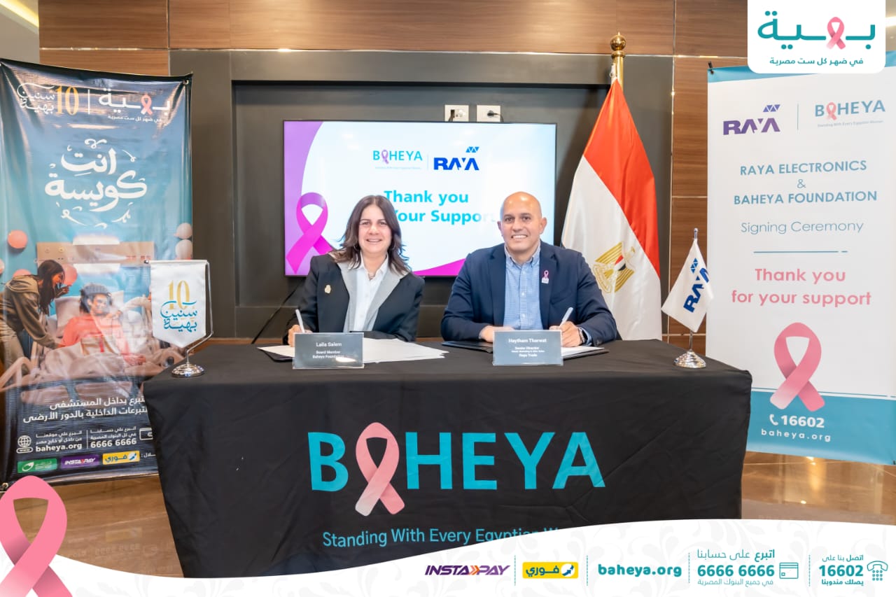 وقعت شركة راية للإلكترونيات، إحدى شركات راية للتجارة والتوزيع، تحت مظلة راية القابضة للاستثمارات المالية، بروتوكول تعاون مع مستشفى بهية المتخصصة في علاج سرطان الثدي بالمجان، لدعم رحلات علاج المحاربات، وذلك تزامناً مع فعاليات شهر أكتوبر العالمي للتوعية بسرطان الثدي.