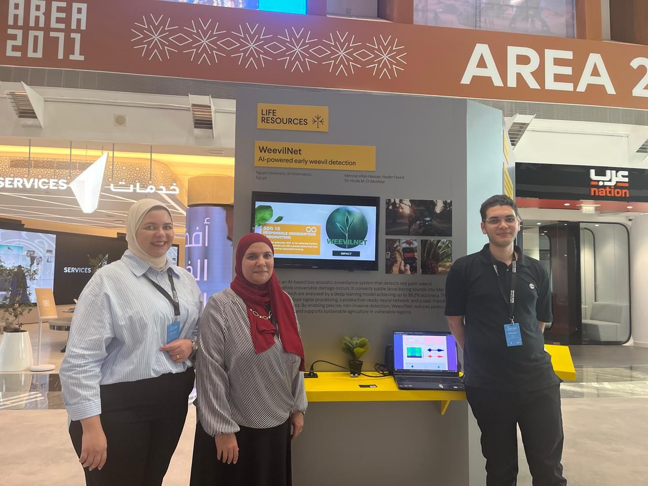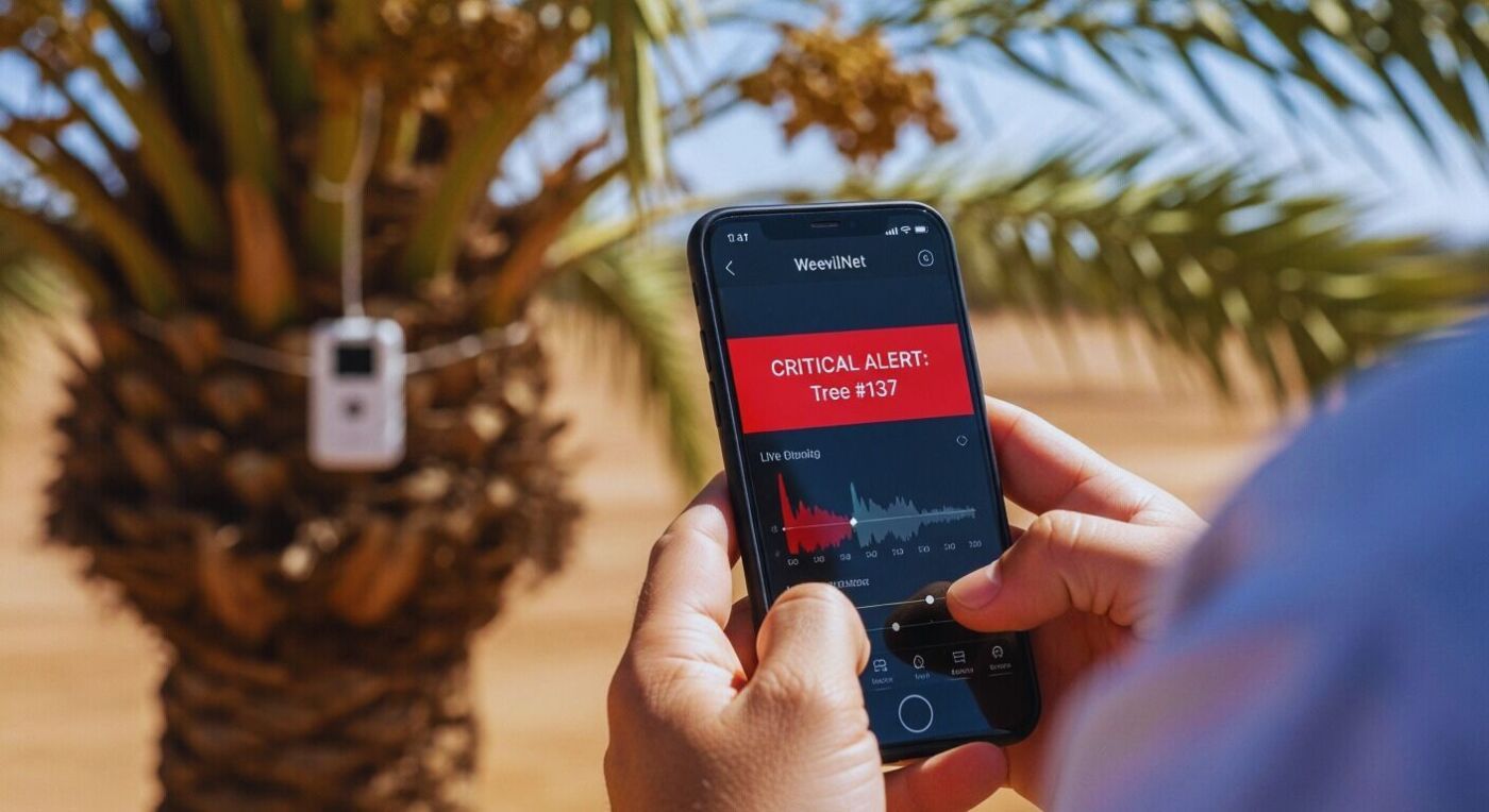 من جانبه قال الطالب نادر فايد، أن مشروعه “ويفيل نت”، هو نظام مراقبة حيوي صوتي قائم على الذكاء الاصطناعي، للكشف عن إصابات سوس النخيل الحمراء، قبل حدوث أضرار لا يمكن إصلاحها، حيث يحول أصوات الحفر الطفيلية إلى مخططات، وتحللها شبكة تعلم عميق بدقة تصل إلى 98.2%.