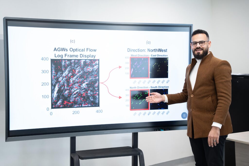 ويهدف البحث إلى تحسين القدرة على اكتشاف وتحليل موجات الجاذبية بالغلاف الجوي العلوي (Atmospheric Gravity Waves) خصوصا في منطقتي الميزوسفير والأيونوسفير، من خلال دمج تقنيات التحليل الطيفي مع أدوات الذكاء الاصطناعي.