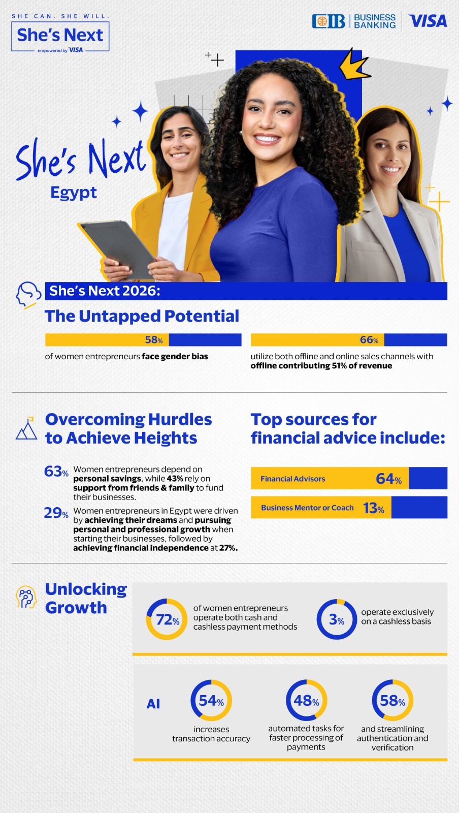 Visa تطلق الدورة الثالثة من مبادرة “She’s Next” بالتعاون مع البنك التجاري الدولي (CIB) وللمرة الأولى مع “Shark Tank مصر” لتمكين رائدات الأعمال