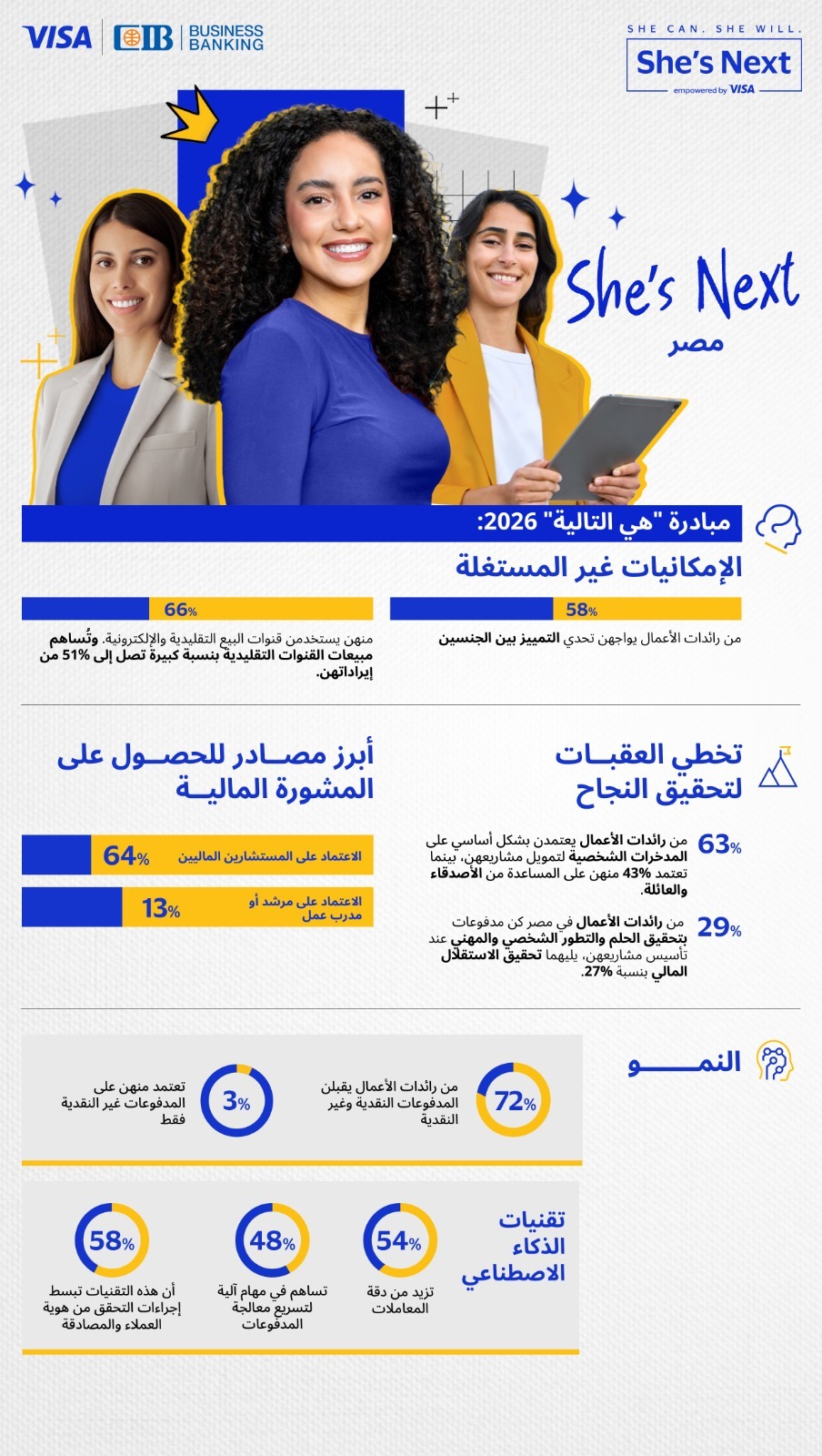 مع إطلاق مبادرة “She’s Next” في مصر، تتخذ Visa خطوة تحولية لتمكين وربط رائدات الأعمال بفرص وموارد جديدة.